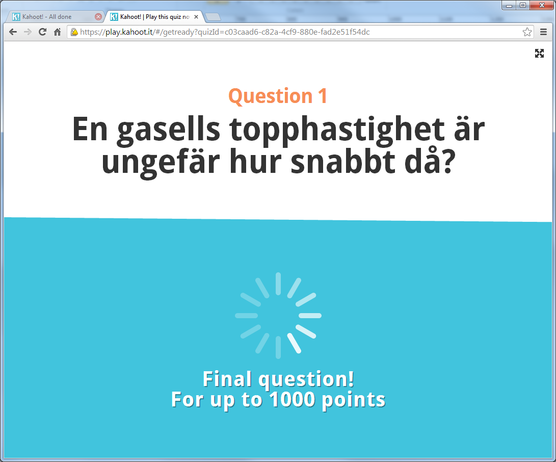 FIrst you create a teacheraccount here Kahoot, getkahoot.com och log in. This is also where you start all your quizes..